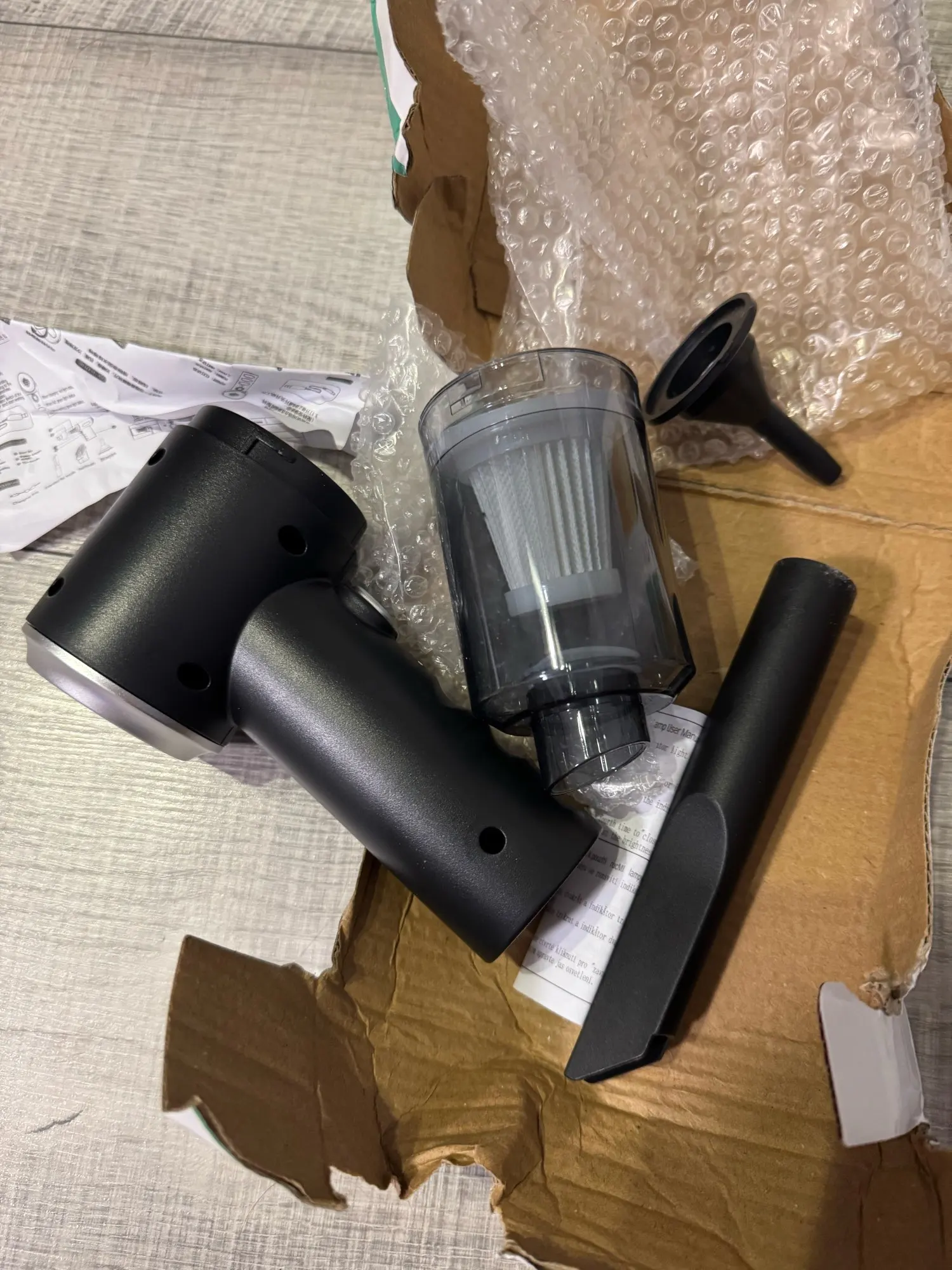 Llegó en un paquete con otros productos, pero algo le paso a este articulo, tal vez lo manejan así en la aduana... El artículo parece estar bien por el precio, pero el estado en el que llegó es terrible 🫣, incluso se desarmó un poco, se escapaba un pco el aire , asi que tuve que apretar los tornillos. Pero aún así funciona perfecto